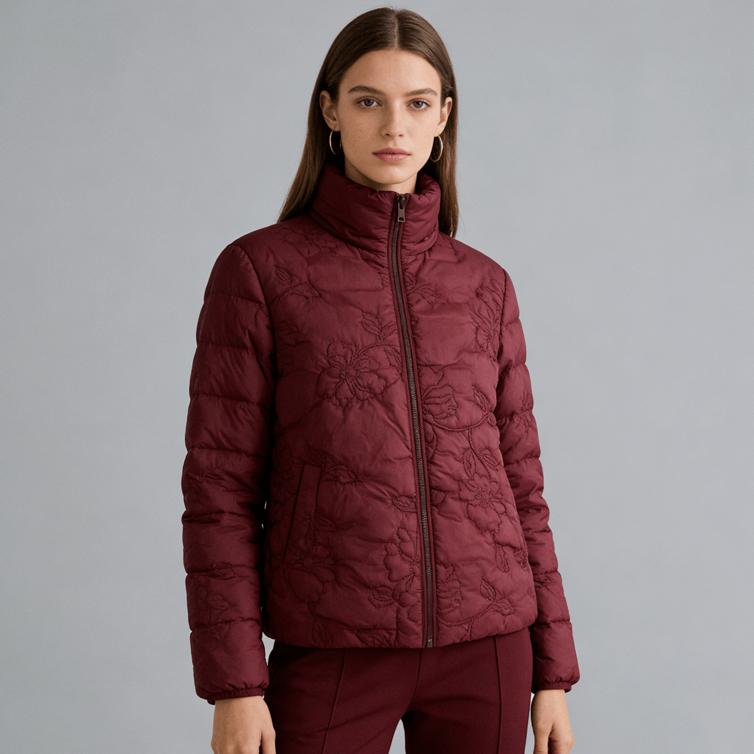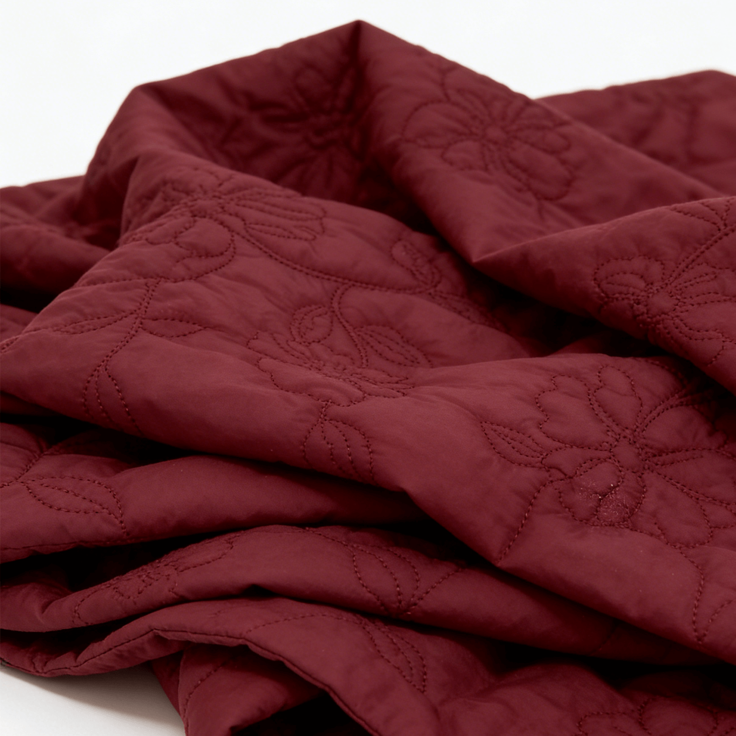 This fabric combines a polyamide base with intricate floral embroidery and a quilted texture, resulting in a three-dimensional, vintage-inspired surface. The embroidery adds delicate decorative details, while the quilting provides unique texture and slight insulation. It balances durability with artistic appeal, making it apt for vintage-style jackets, fashion handbags, and home décor items such as cushion covers and wall hangings.